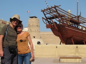 This time we went to Old Dubai, the neighborhoods of Deira and Bur Dubai separated by the Dubai Creek. Besides historic buildings, bazaars and the Dubai museum you can see traditional wooden cargo boats being loaded up to the gills. Their destination is Iran across the Persian Gulf.